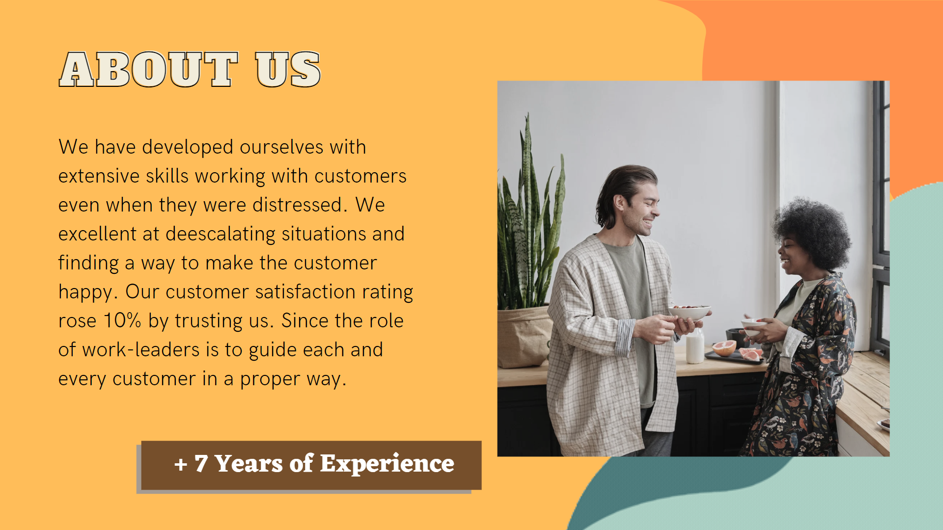 “Don’t let your financial needs, stop your dreams” Because we’re easy to work with. We take the work seriously, but not ourselves. We’re not prickly, precious or pretentious.